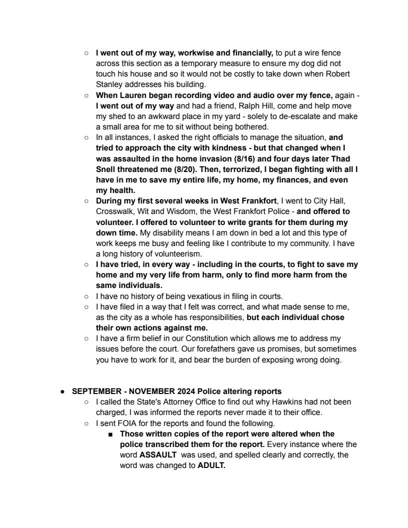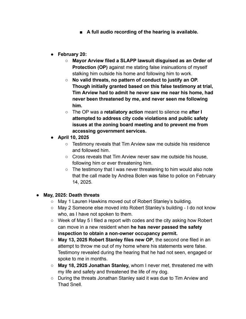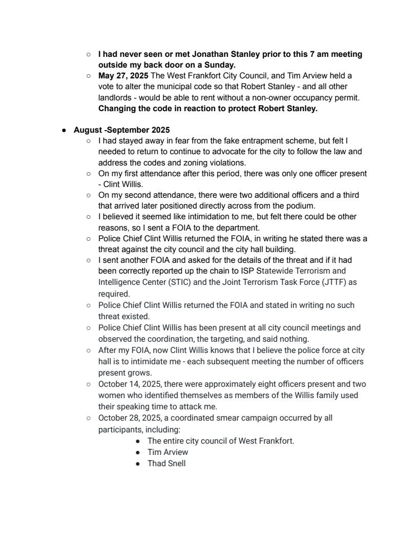 This is the 10/28/2025 city council meeting where the retaliation and intimidation against a state and federal litigant was broadcast of a Facebook livestream event and the city council, the city attorney Jonathan Cantrell, mayor Tim Arview, and the landlord and tenants involved in the first video above - after more than a year of targeting me, a disabled widow as a group. Continuity, collaboration and RICO is shown. I believe this constitutes a hate crime and RICO, and many other state and civil rights violations.