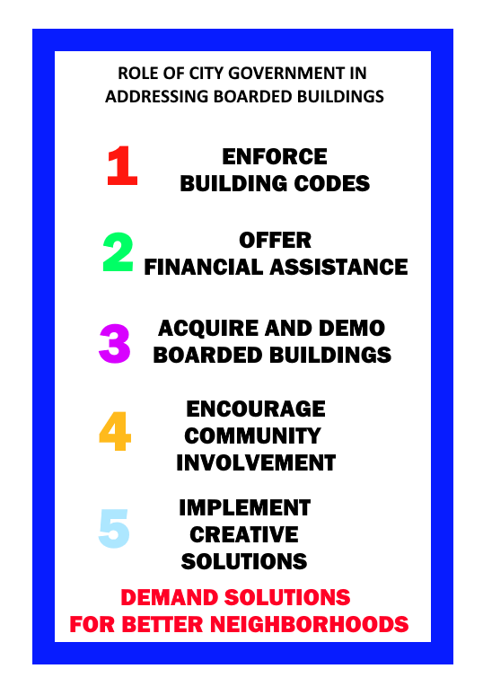 Neglected structures decrease surrounding property values by 15-25%.