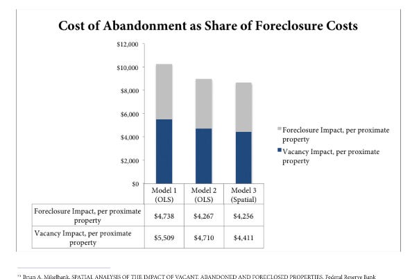 Areas with abandoned buildings experience business closures at a rate 3x higher than properly maintained areas.